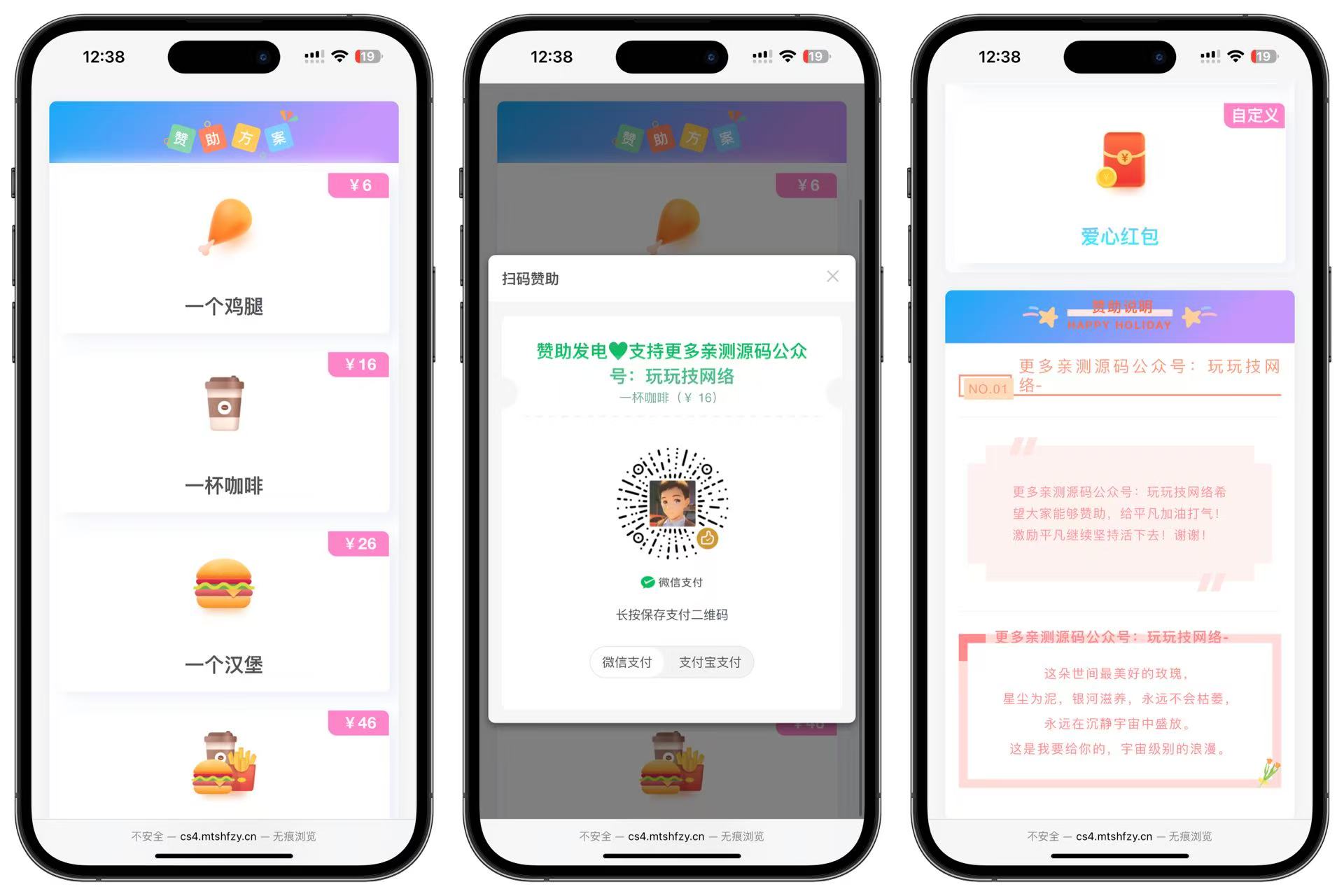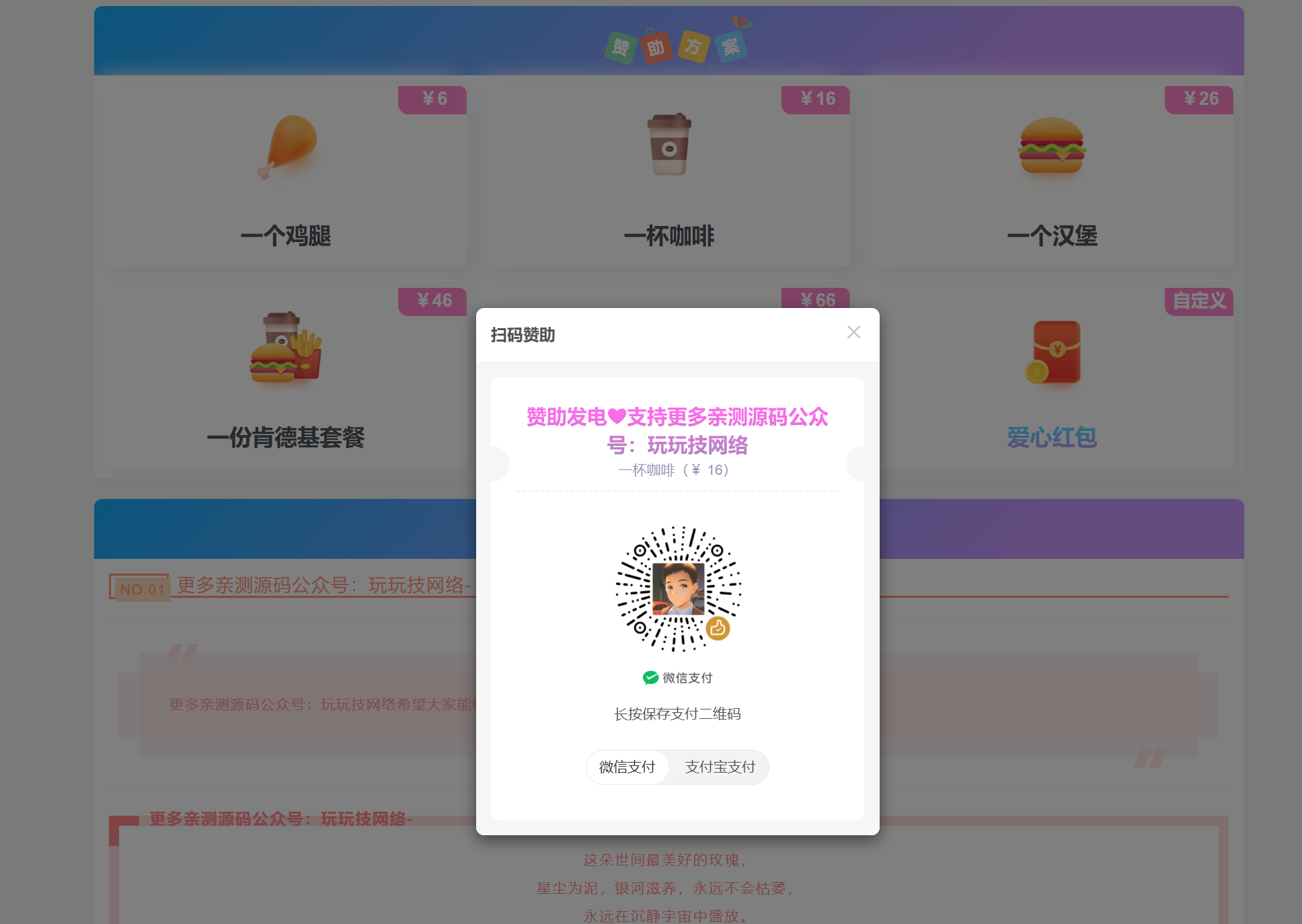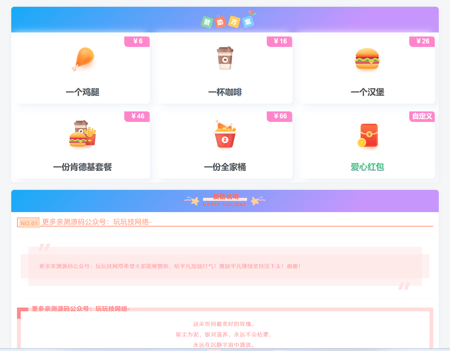 一款简洁而美观的HTML页面,专为个人收款和接受他人打赏而设计,这一款太简单了就是个单页系统就不放演示了,如下图所示,可以嵌入网站里面使用!